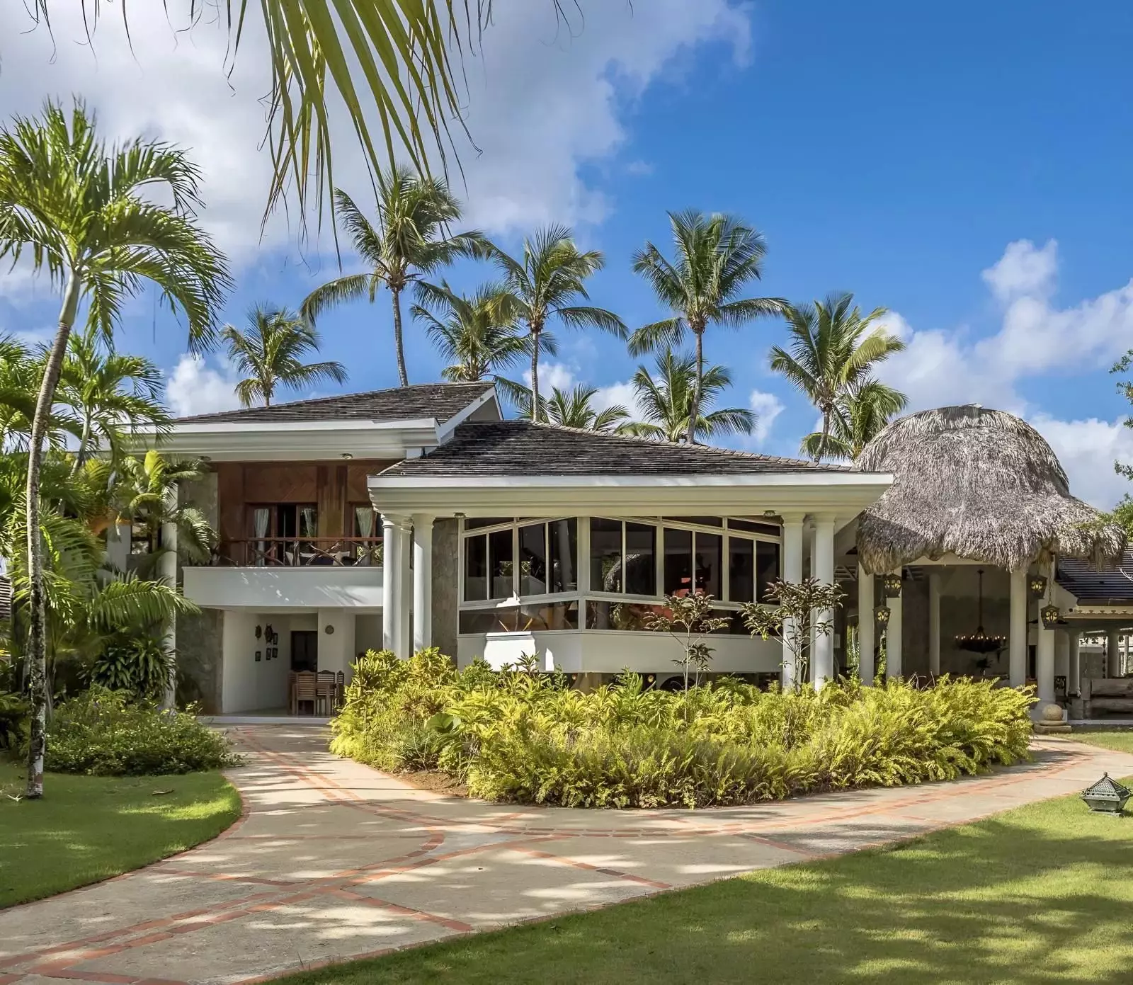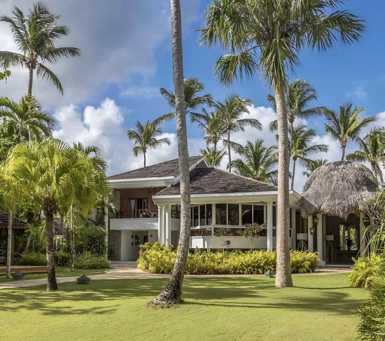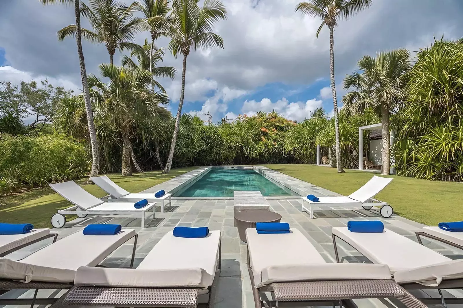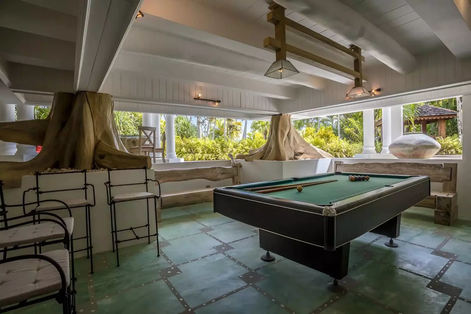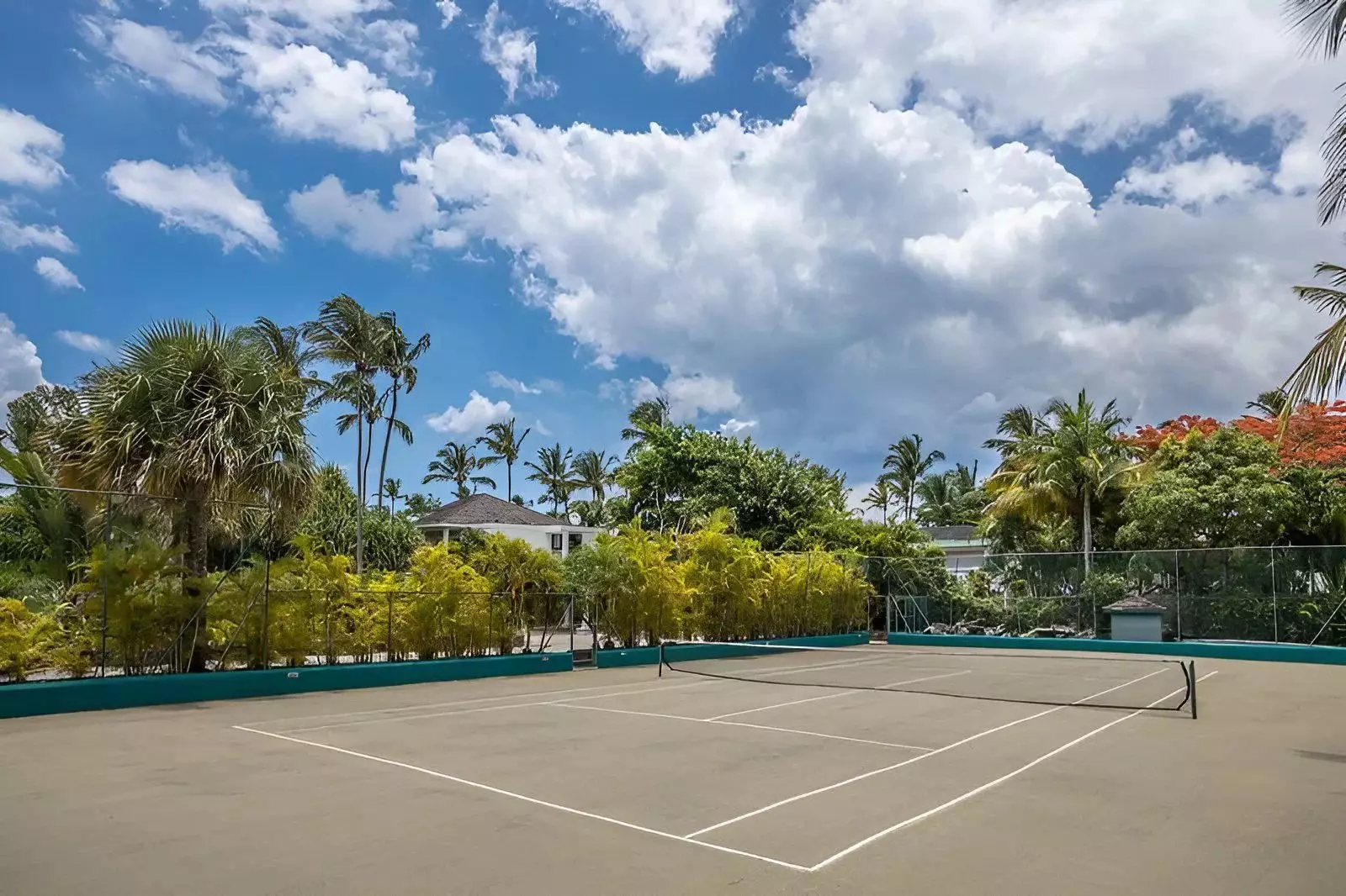 La villa est composée de deux bâtiments séparés par une belle piscine de nage et un court de tennis. La partie principale comprend un majestueux séjour ouvert sur le parc, une salle à manger pour 18 personnes, un salon, un coin détente avec billard et une cuisine professionnelle. Deux chambres avec salle de bain s’ouvrent sur le jardin et la plage. Au second étage, la suite parentale dispose d’un salon, d’un coin bureau, d’une salle de bain, d’un dressing et d’une terrasse offrant une vue imprenable sur le parc et l’océan.