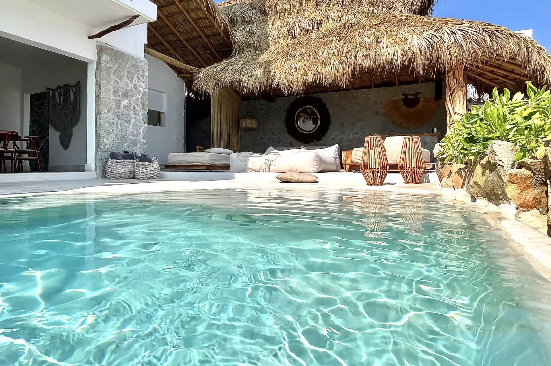 Détendez-vous dans la palapa extérieure dotée d’un salon et d’un bar, ou plongez dans la piscine privée à débordement avec hydrojets et cascade. De plus, la maison dispose d’une terrasse avec chaises longues et poufs, haut-parleurs sans fil, salle à manger, cuisine entièrement équipée, salle de télévision et plus encore. Avec des services tels que le ménage quotidien et un cuisinier disponible 8 heures par jour, votre séjour sera inoubliable.