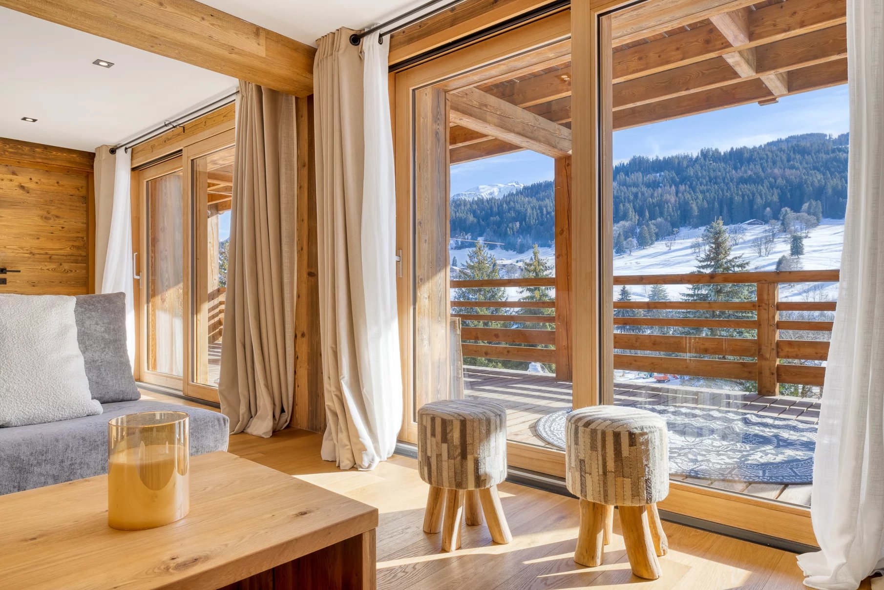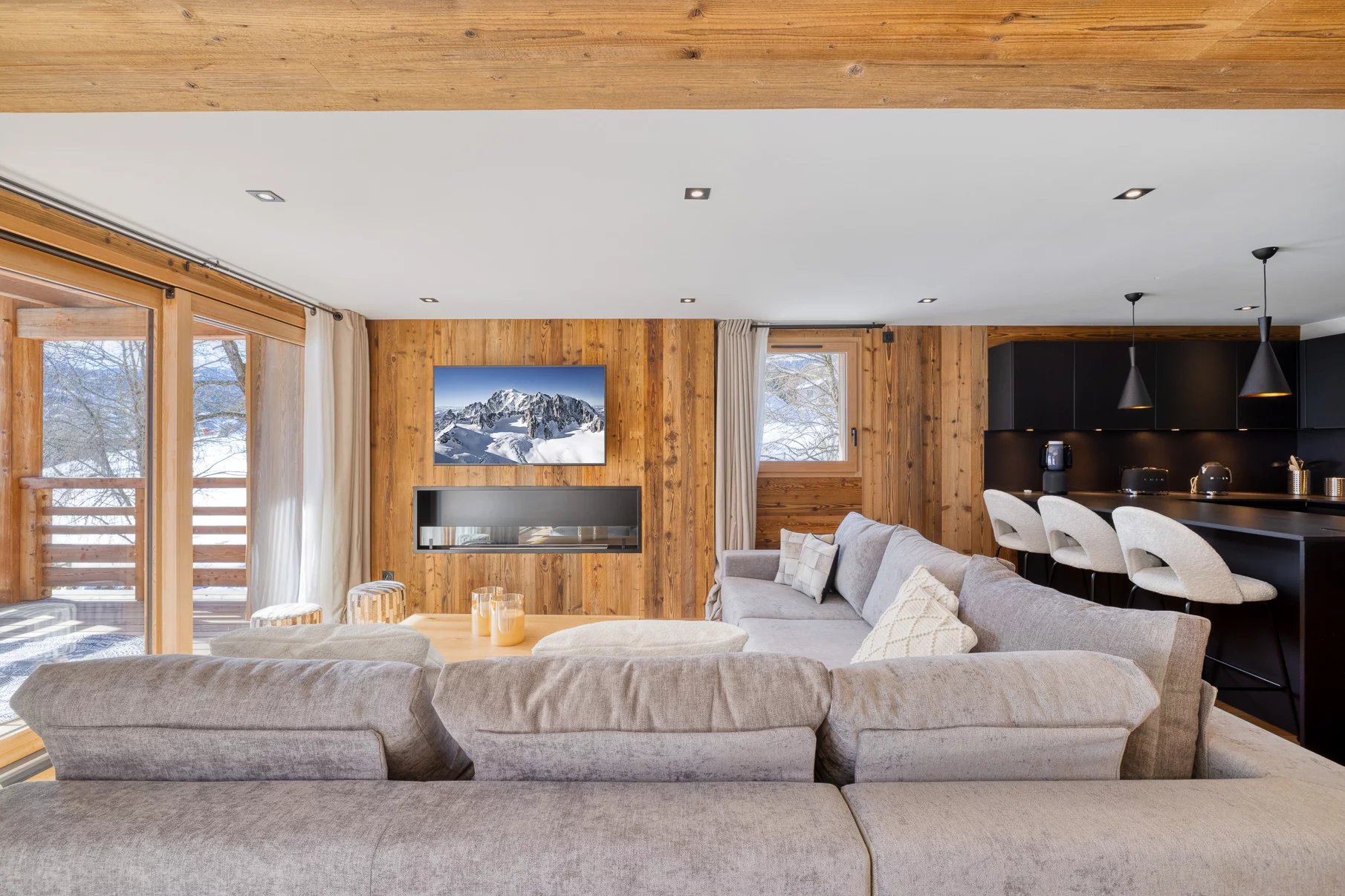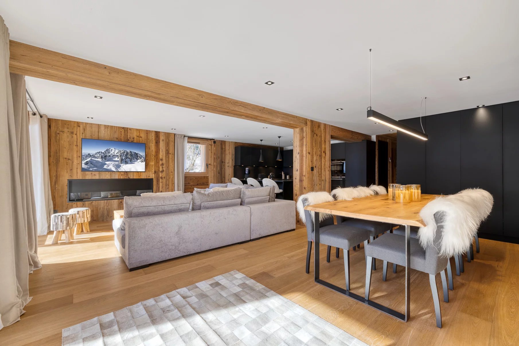 À Megève, dans le village de Combloux, ce Chalet vous invite à découvrir un appartement de luxe à louer pour vos vacances. Situé au rez-de-chaussée, cet appartement de 157 m² peut accueillir jusqu’à 10 personnes et offre une vue imprenable sur le massif du Mont Blanc.