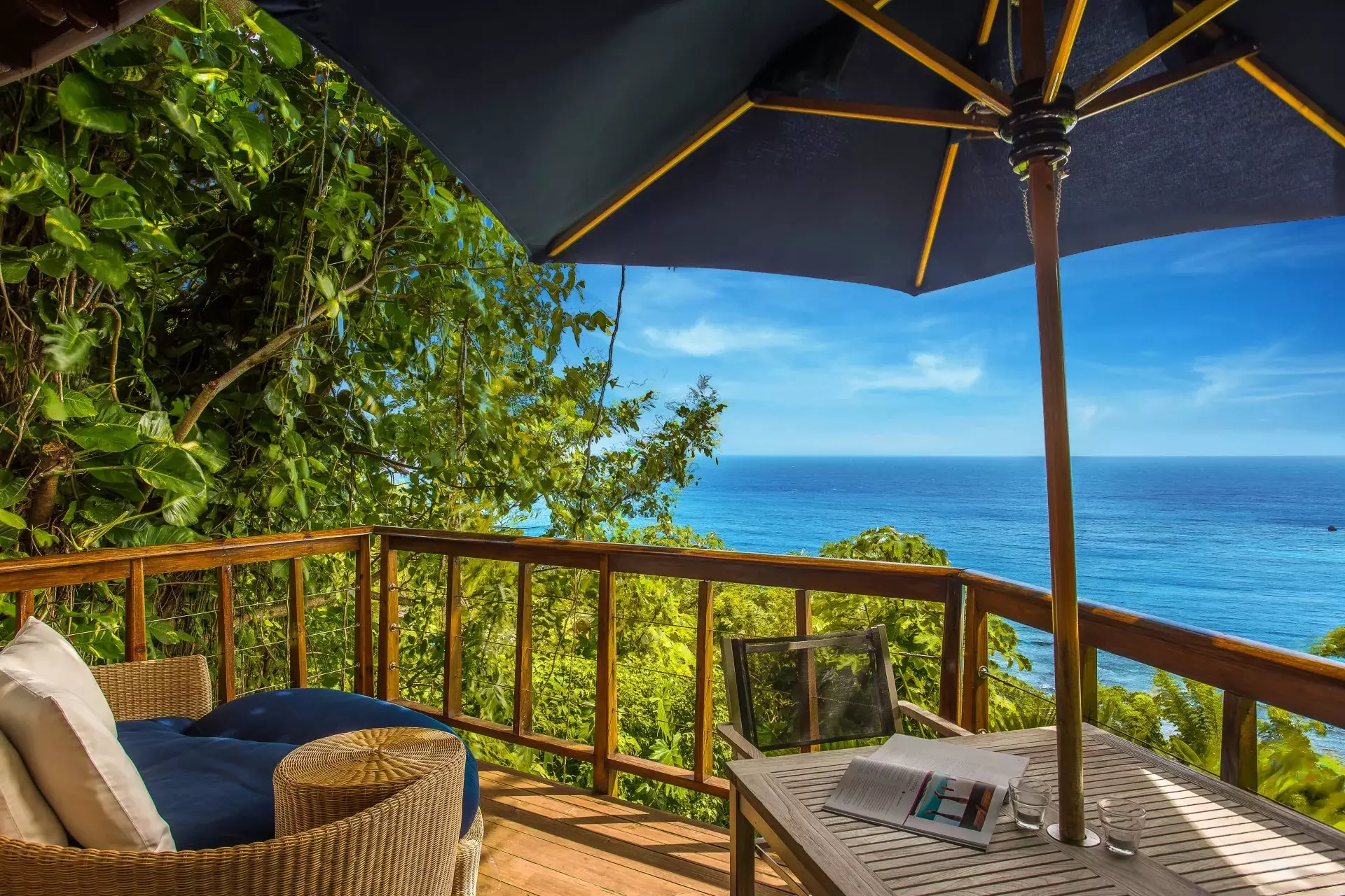 Jamaïque – Port Antonio – Cabane – Location de vacances – 1 chambre – Vue sur l’océan – 2 personnes – Douche attenante – Home cinéma – Hammam – Minibar – Véranda et salon extérieur – Wifi – Climatisation – Balcon – Dock iPod – Jardin – Mobilier extérieur – Kayaks – Accès privé à la plage.