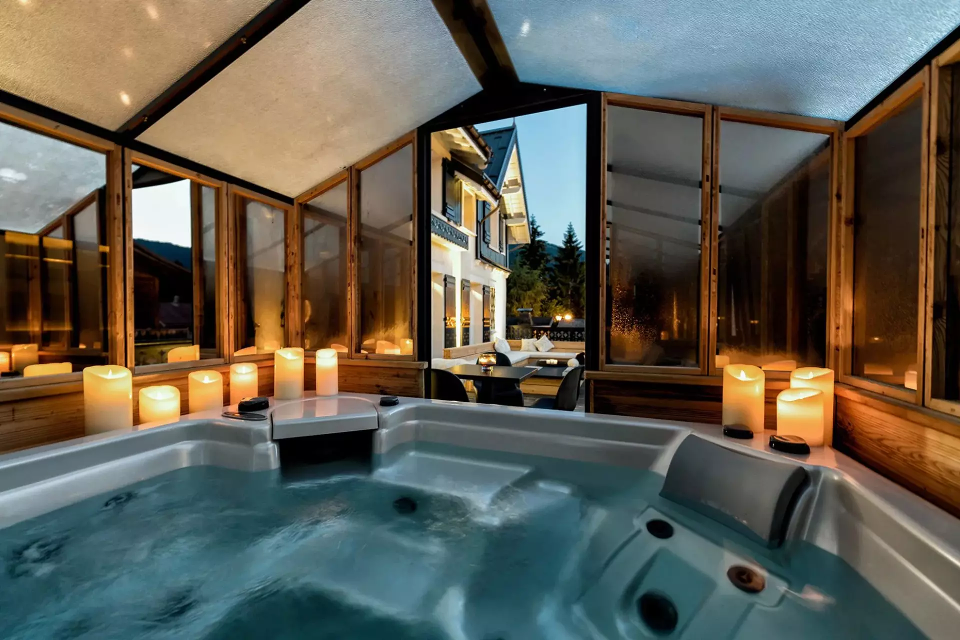 Chalet à Megève, 12 personnes, jacuzzi, cinéma, spa