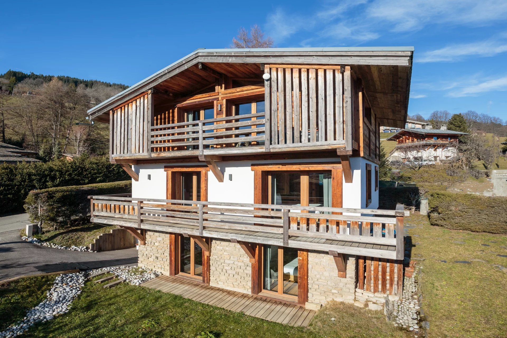Niché dans le quartier pittoresque du Jaillet à Megève, ce chalet est un véritable chef-d’œuvre architectural, parfaitement situé à proximité des pistes de ski et des charmants commerces de la station. Conçu pour offrir un séjour inoubliable au cœur des Alpes, le chalet présente une architecture moderne et élégante, mêlant harmonieusement esthétisme et confort absolu. Dès l’entrée, vous serez accueillis par de vastes espaces de vie ornés de matériaux nobles comme le bois et le marbre.