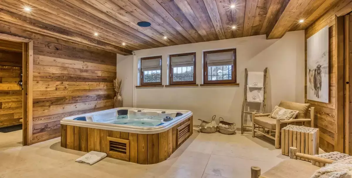 Megeve – Location saisonnière – Chalet – 5 chambres – 3 salles de bain – Local à ski – Jacuzzi