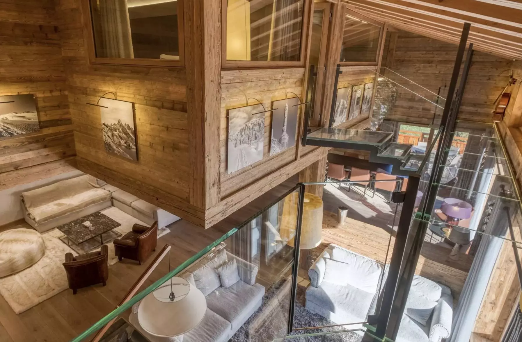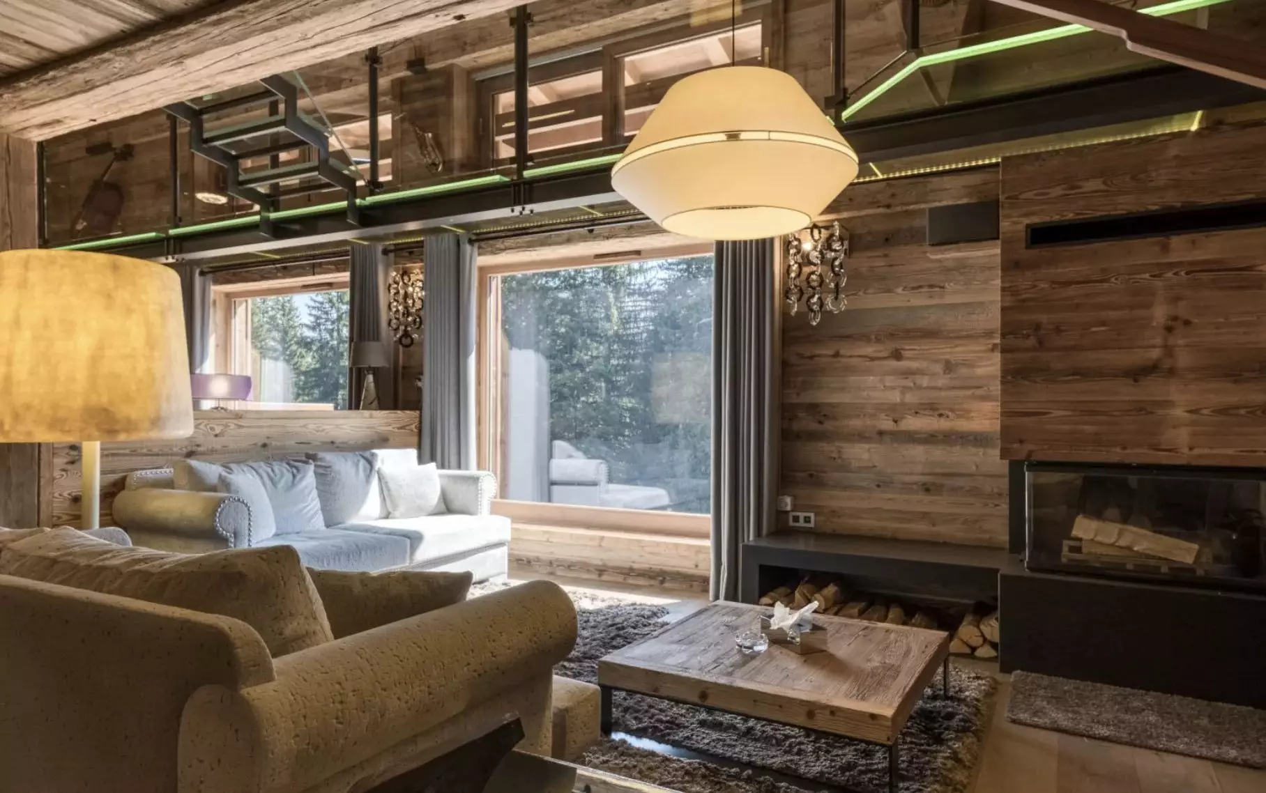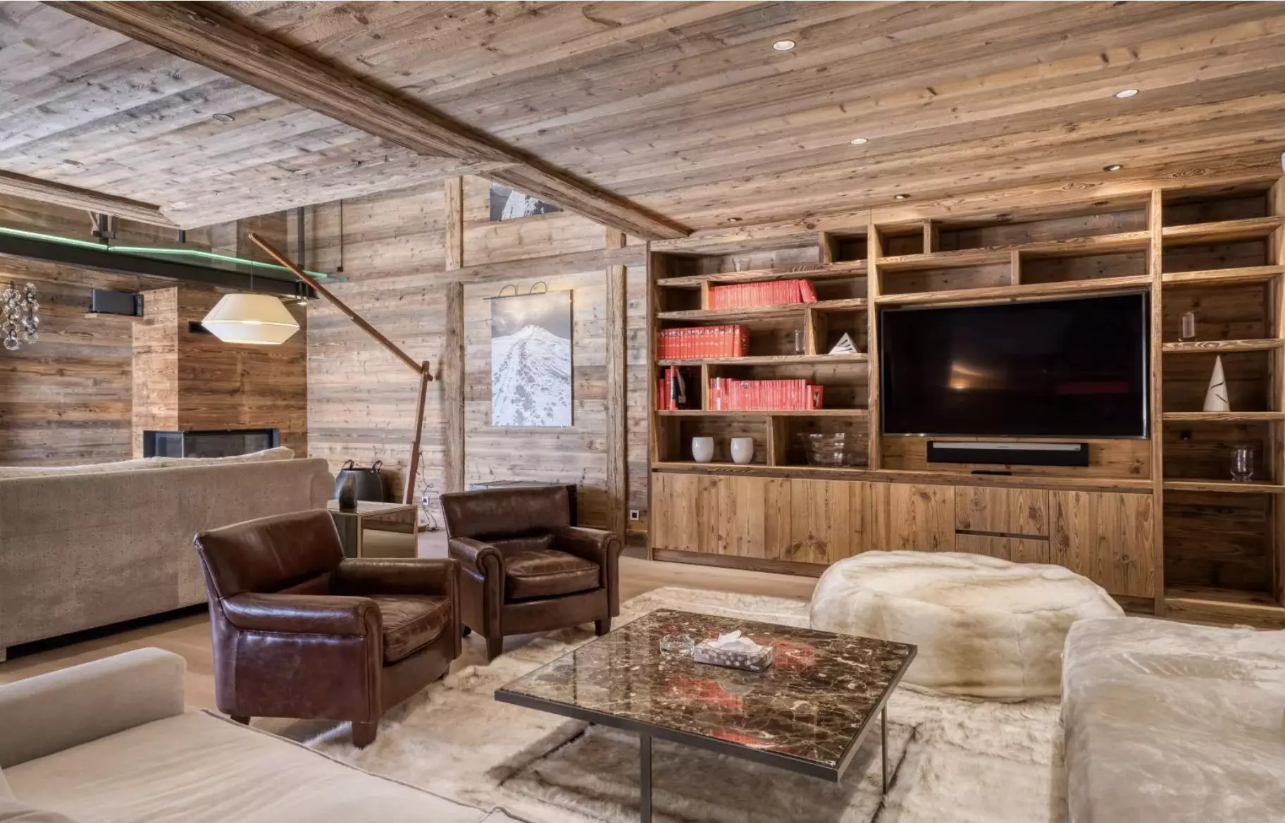 Toute la décoration intérieure a été pensée dans des tonalités chaudes créant un contraste avec le blanc immaculé de la neige extérieure.