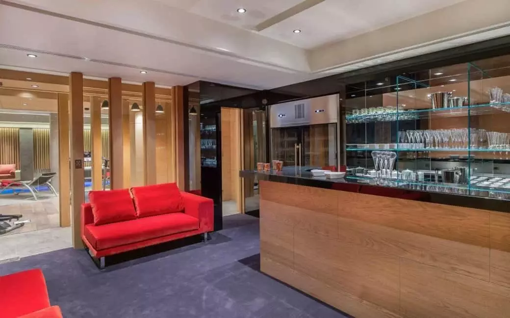Vous bénéficiez d’un accès permanent au lounge bar. Situé au centre de la pièce et aménagé de chaises hautes et canapés, le bar à spiritueux est à la fois chic et décontracté. Il promet un moment de totale décompression et propose, en toute intimité, une sélection unique de vins et champagnes.